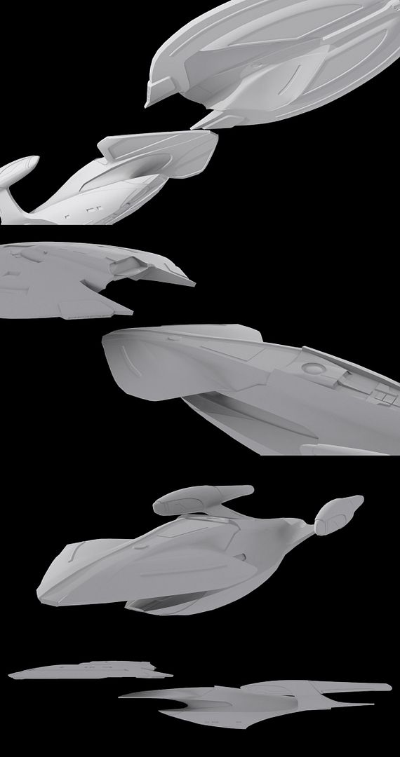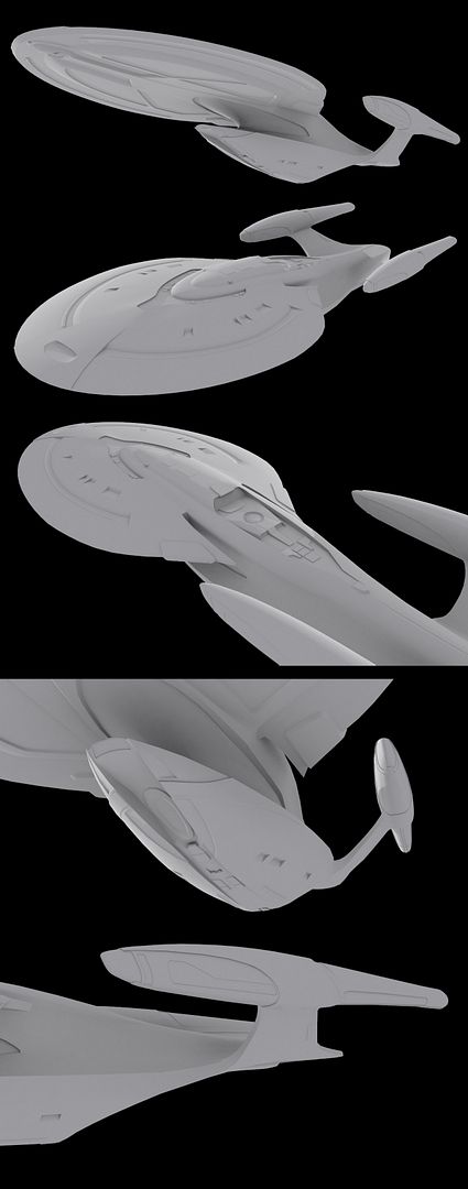When I get to the textures, one of the ships will be named Sambreign (I like the name, but it is too close to Sovereign). :) Other details such as the deflector dish might be rebuilt as I progress with textures.
