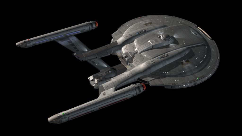 The original NX-class Enterprise design was a spectacular success by most measures. Henry Archer's revolutionary warp 5 engine proved its value as an enabler for deep space operations across a multisector range. Still, postmission analysis after the costly Xindi conflict of 2153 revealed the engine's original matter/antimatter reactor core to be underpowered in combat situations. Starfleet quickly determined that retrofitting the core would be necessary, given the ship's ongoing role in Earth's exploration of deep space and its value in planetary defense. This proved problematic in that installing a larger core in the ship's primary hull would have entailed rebuilding most of the saucer section. Fortunately, Starfleet engineers devised a radical solution: Adding an outboard module specifically designed to house an uprated reactor core and related engineering systems. This engineering module would be designed to occupy the secondary lobe of the ship's subspace field during warp flight. In this way, the existing warp nacelles could be fed by a greatly uprated reactor, while avoiding a time-consuming reconstruction of the primary hull. Additionally, the ship's original main deflector had been found to be inadequate during warp travel through regions of dense interstellar particulates, so a second, larger dish was incorporated into the design. Installation of the new engineering hull was surprisingly straightforward, and the NX-class Enterprise was returned to service after only 180 days in spacedock, resuming its historic mission to boldly go where no man had gone before.