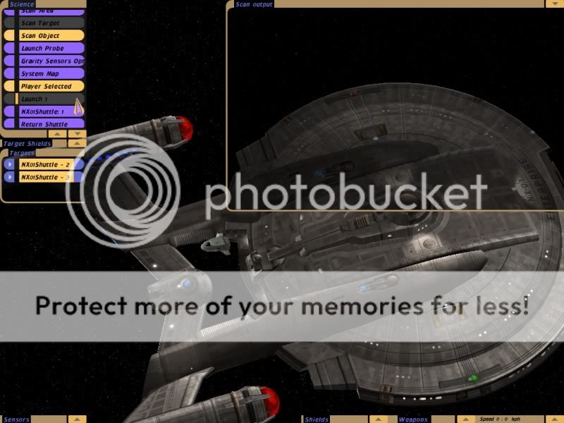 ..it works! Maybe a bit cheesy with the shuttle bay doors not opening and the shuttles all coming out from the same spot but it sure beats the hek out of setteling for rear shuttle launches  :P