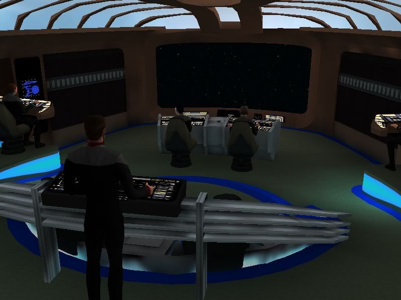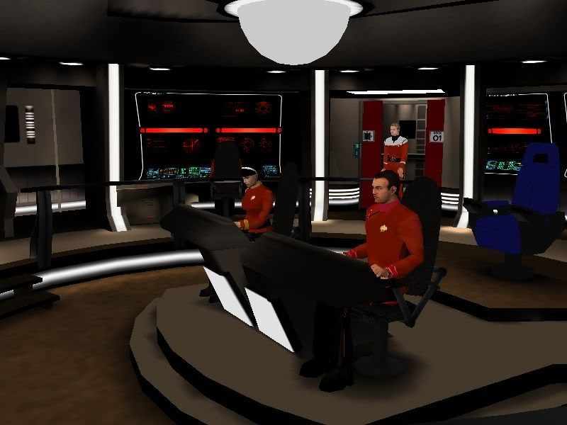 Here's Venture with new red alert WIP.  Was trying similar idea to NemBridge by keeping animated lcars but changing to red lightmap at alert.  Looks nice ingame but should let testers have final say.