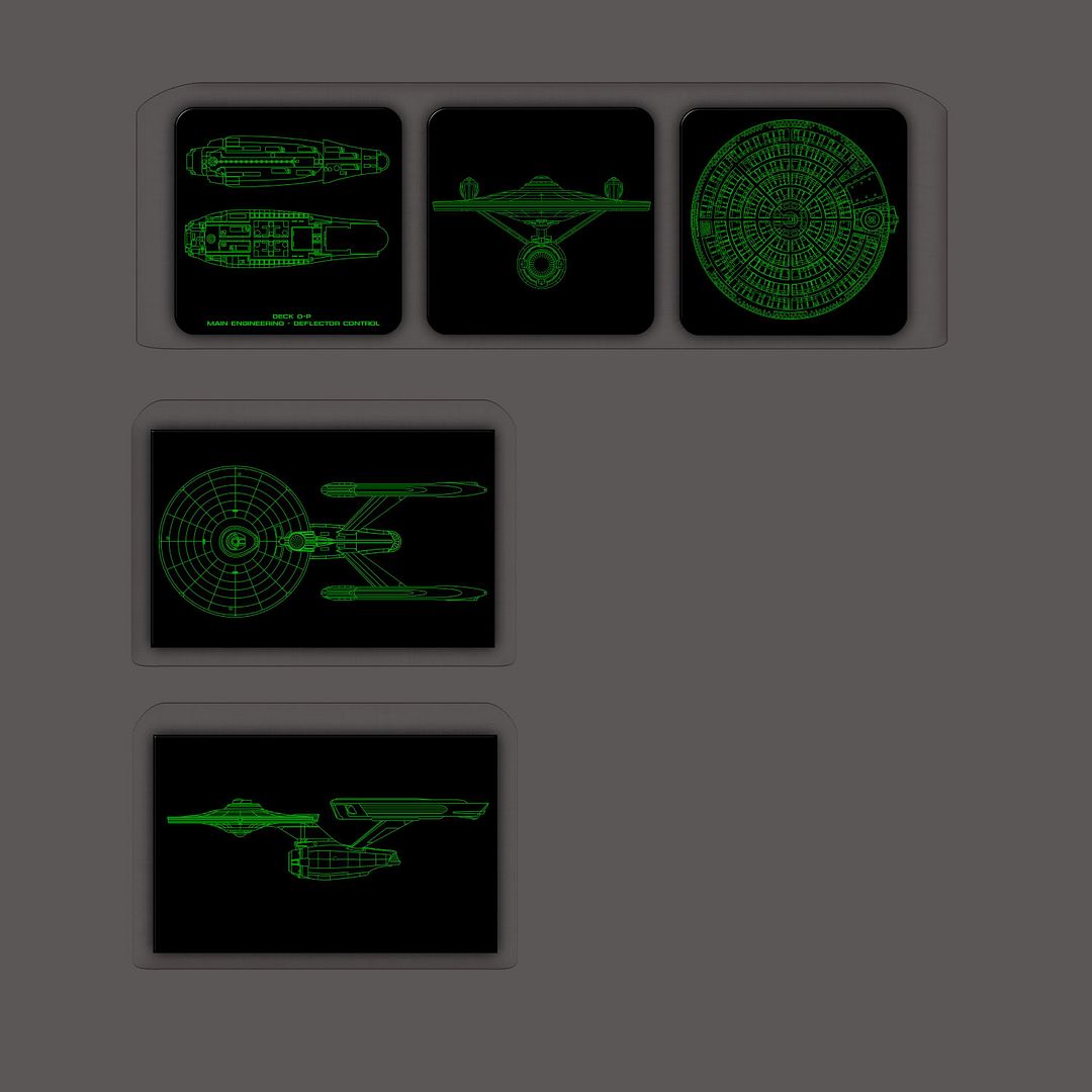 -Speaking of the deflector display...this is a nit...but your screen cap has the Weapon's console's shield display overlapping the three vertical glowing things on the wall.  It's actually further forward.  Also (a total nit) all of the movie shots show the saucer on that diagram facing aft.  You've got it like it was in TMP...facing forward.