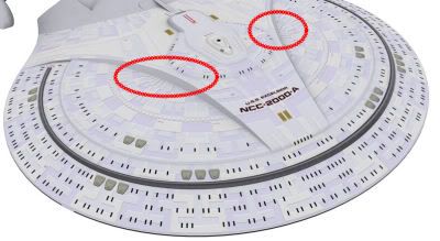 May I suggest placing a registry number in yellow on the approach to the main shuttlebay? Like the Galaxy class had.